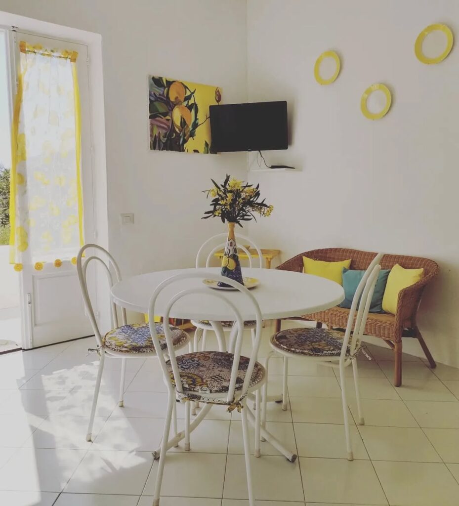 La struttura è una casa vacanze indipendente dotata di tre camere da letto, due bagni, cucina attrezzata, zona pranzo, terrazza panoramica e giardino.